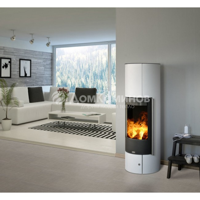 Печь-камин ABX Oregon – это оригинальная отопительная печь в стиле модерн. Данная модель имеет цилиндрическую форму, и может быть размещена даже в небольшом помещении. Такая печь обладает высокой эффективностью в работе. Стильный и элегантный внешний вид успешно дополняет большое панорамное стекло топки. В нижней части камина расположен вместительный зольник и отделение для хранения дров. Специальная конструкция топки АВХ позволяет эффективно использовать загруженное топливо и достигать высокого КПД. Кислород для горения подается экономично и дрова горят долго. Дым не выбрасывается в трубу, а возвращается (вторичный дожиг) в топку и там заново участвует в процессе горения.