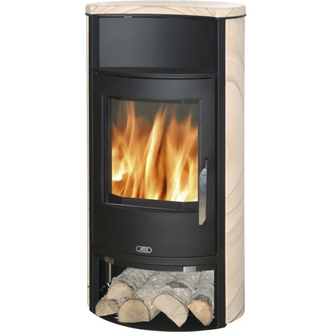 Печь-камин ABX Pori 7 Аква с теплообменником (черная сталь, бразильский песч.с верх. плитой)