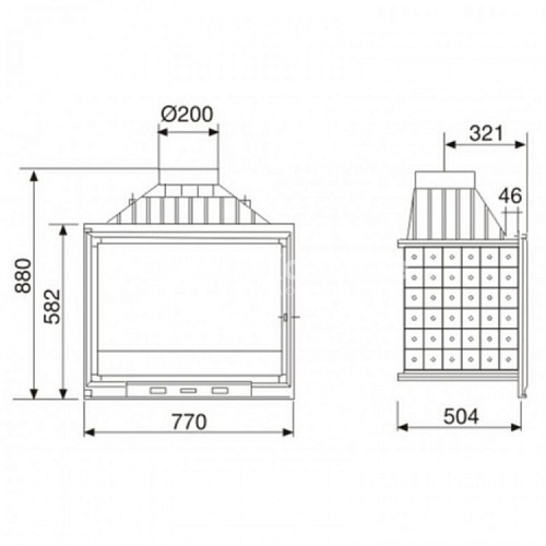 Чугун. Без подъемного механизма. Диаметр выходного патрубка без чугунного шибера - 20 см. Поддерживается режим длительного горения.