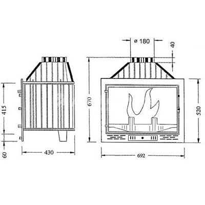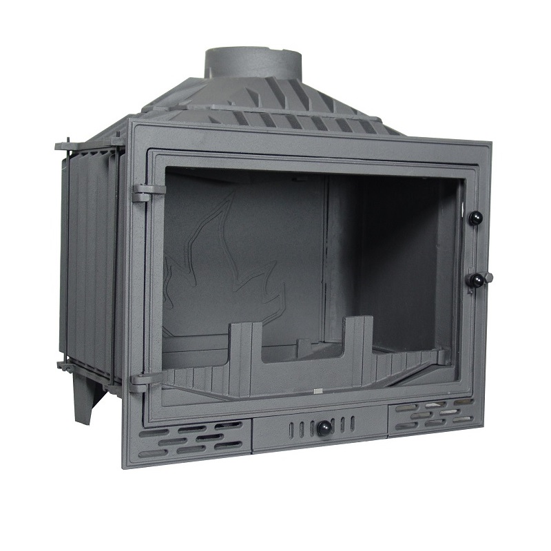 Чугунная топка Ferlux C-20 серии «bloque» с плоским стеклом, ограничитель дров, оригинальный дизайн внутренней части, удобный зольник.