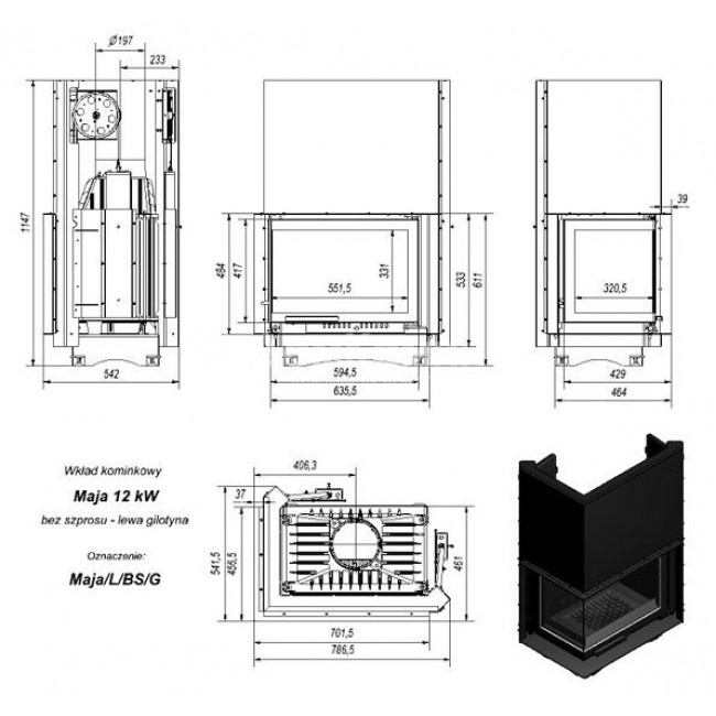 Каминная топка Kratki Maja L BS G (угловое стекло слева, гильотина)