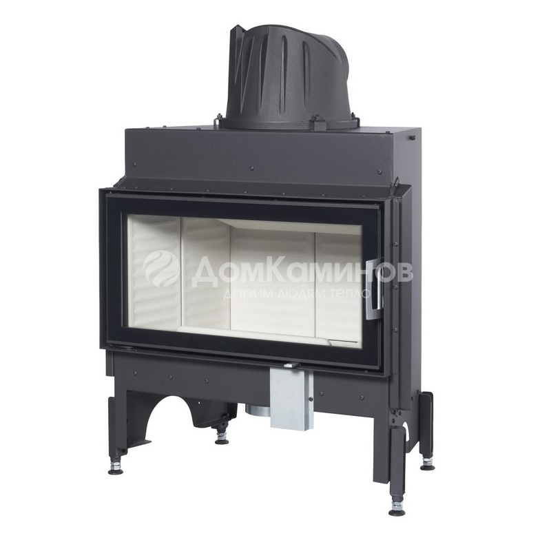 Топка Austroflamm 75x39 K из легированной стали с камерой сгорания из «Keramott» – специальная разработка, компании «Austroflamm». Материал отличается особым соотношением теплоизоляции и теплопроводности, за счёт чего быстрее достигаются высокие температуры в топочной камере. Чугунный дымосборник.