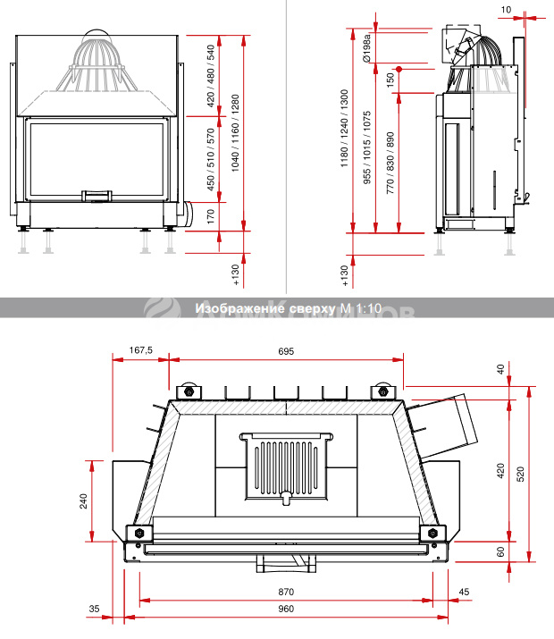 Диаметр дымохода - 200 мм.