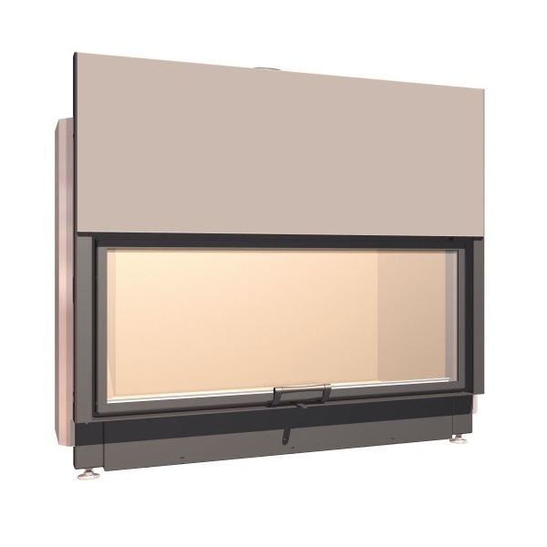 Топка Schmid Lina 12057 h с прямым стеклом. Дверца топки открывается вверх, а также в сторону для чистки стекла.