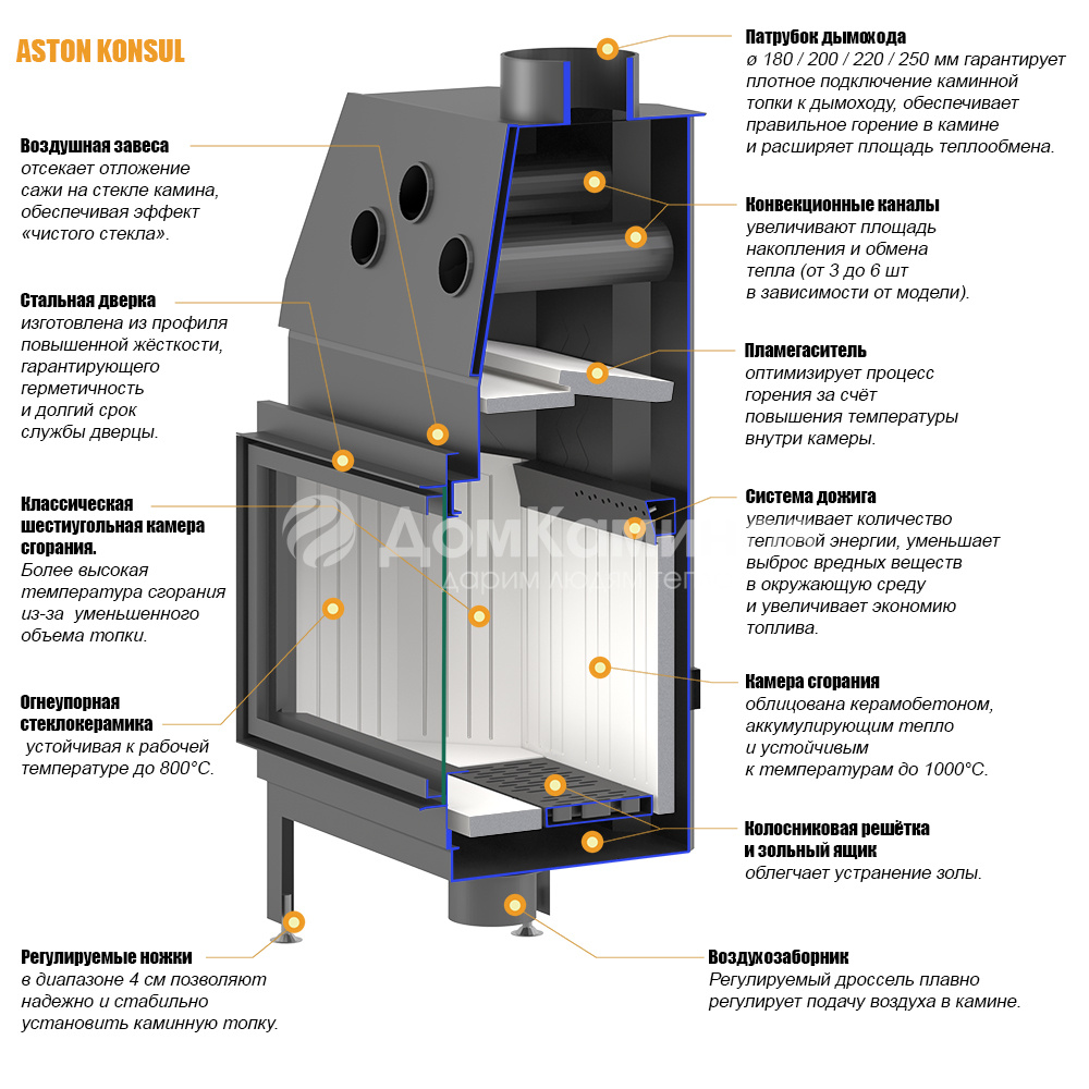 Каминная топка ASTON "KONSUL 19.900" диаметр дымохода: 220 мм 00000023428 купить по выгодной и доступной цене в Сургуте и с доставкой по другим городам России, Беларуси и Казахстана | Звоните в интернет-магазин Дом Каминов