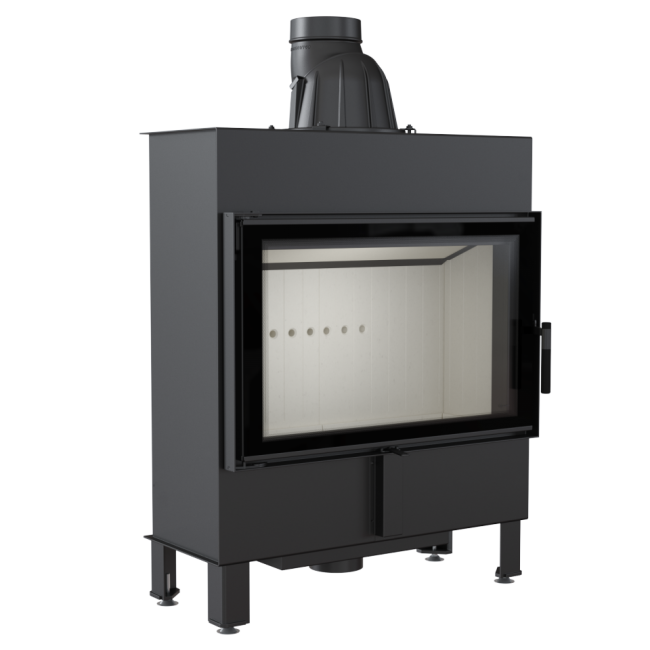 Дверца с прямым стеклом открывается вбок. Ширина видимой части топки составляет 804 мм, высота - 513 мм. Топливом для топки служат дрова и древесный брикет. Максимальный размер полена составляет 400 мм. Диаметр дымохода составляет 160 мм, подключение сверху.