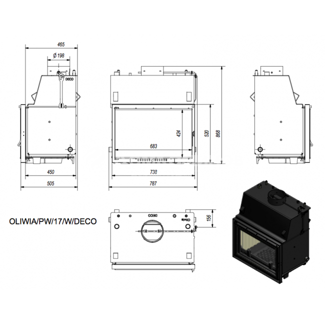 Каминная топка Kratki OLIWIA PW 17 W DECO