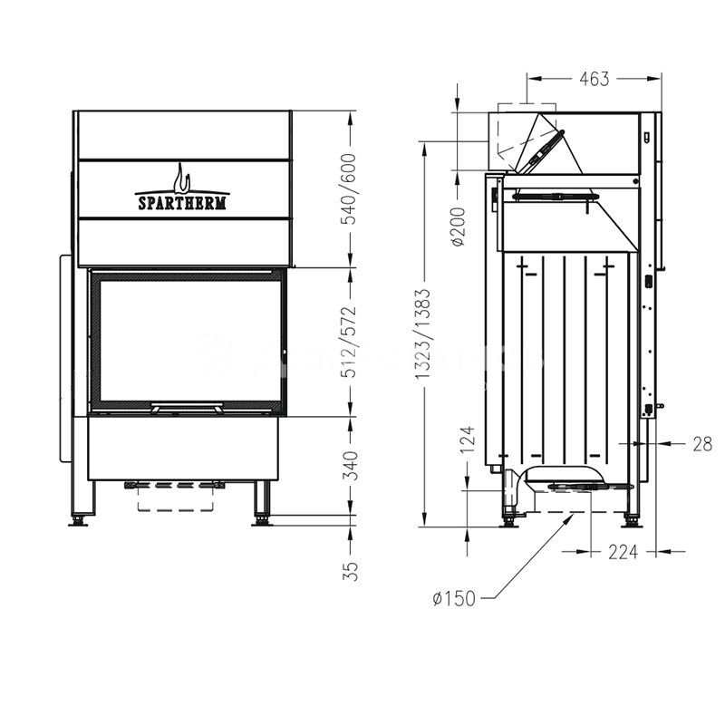 Каминная топка Spartherm Varia 2Rh 4S из стали толщиной 4/5 мм с антикоррозийным покрытием. Дверца с двумя панорамными керамическими стеклами, которая открывается вбок и вверх. Шамотный кирпич внутри топки увеличивает температуру в топке, накапливает это тепло во время работы топки, и длительное время излучает его после окончания процесса горения.