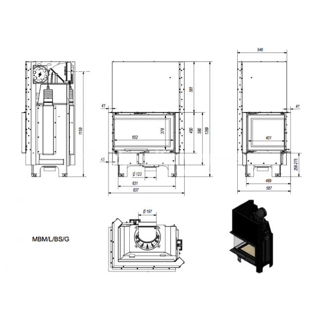 Корпус каминной топки изготовлен из котловой высоколегированной стали толщиной 4 мм, способной работать при повышенных температурах. Внутри камера сгорания футерована керамикой Acumotte, которая аккумулирует тепло, повышает температуру, способствует улучшению параметров горения и защищает стальной корпус. Детали топки выкроены методом лазерной резки, а затем отформированы на гибочных станках с ЧПУ и соединены высококачественным сварным швом.