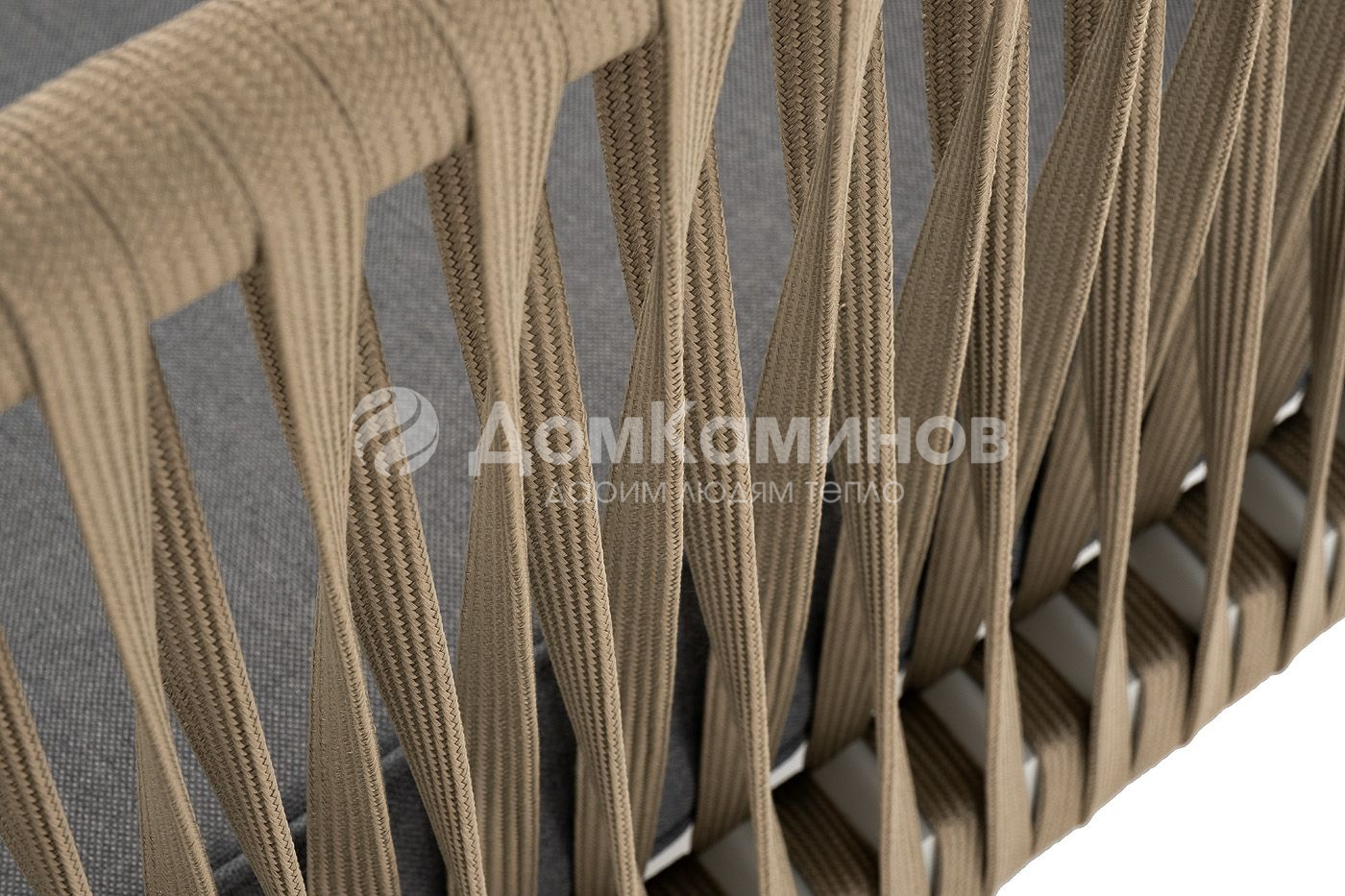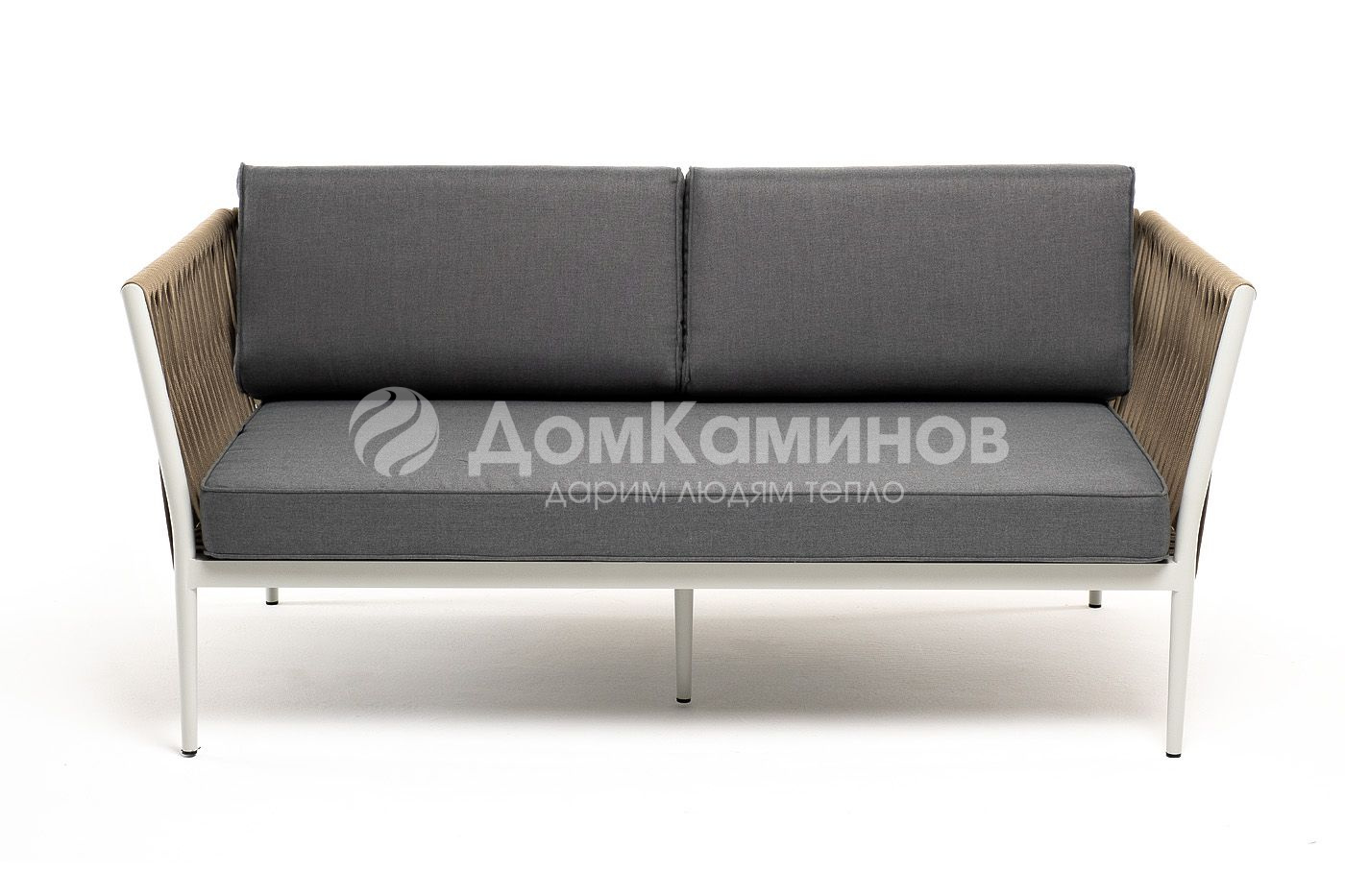 Диван 4SIS Касабланка 2-местный из роупа, каркас алюминий светло-серый (RAL7035) муар, роуп серо-коричневый 23 мм, ткань серая 017