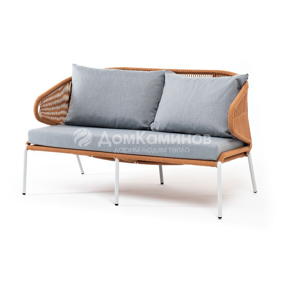 Диван 4SIS Милан 2-местный плетеный, каркас алюминий светло-серый муар, роуп оранжевый меланж, ткань светло-серая по выгодной цене в Сургуте | Дом Каминов
