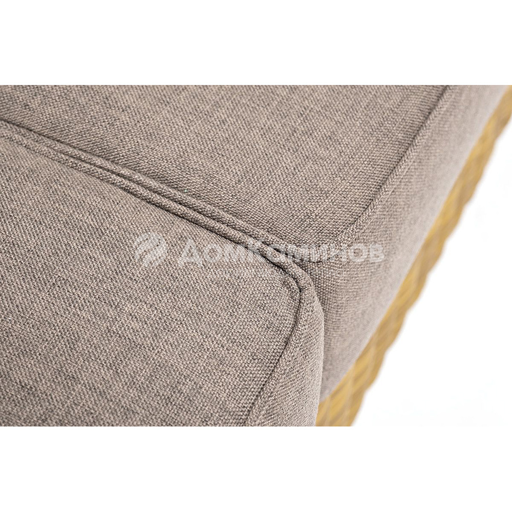 Диван «Боно» подходит для размещения сразу трех персон. Его основа из прочного алюминиевого каркаса. Размер модели – 2300*900*775 мм, толщина подушки: 150 мм, вес: 45 кг.Ручное круглое плетение является основным декоративным элементом мебели. Оно выполнено из искусственного ротанга в коричневом цвете.В комплекте с трехместным диваном идут мягкие подушки для комфортного расположения. Чехлы съемные серо-коричневого цвета из высококлассного полиэстера с плотностью 230гр/м2. Защитные свойства ткани усиливаются при помощи влагоотталкивающей пропитки.
