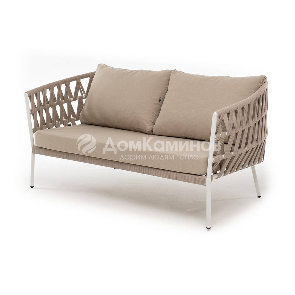 Диван 4SIS Диего 2-местный из роупа, каркас белый муар, роуп бежевый, ткань бежевая 035