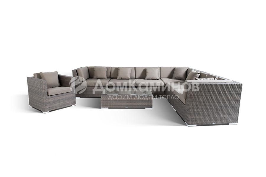 Современная трансформирующаяся лаунж зона Беллуно из искусственного ротанга плоского плетения. Простые линии, придающие изысканности комплекту, подчеркивают ее солидность. Все модули комплектуются мягкими подушками для максимального комфорта. Каркас изделий выполнен из алюминия, что гарантирует продолжительный срок службы модели. Журнальный столик со стеклянной столешницей толщиной 5 мм.