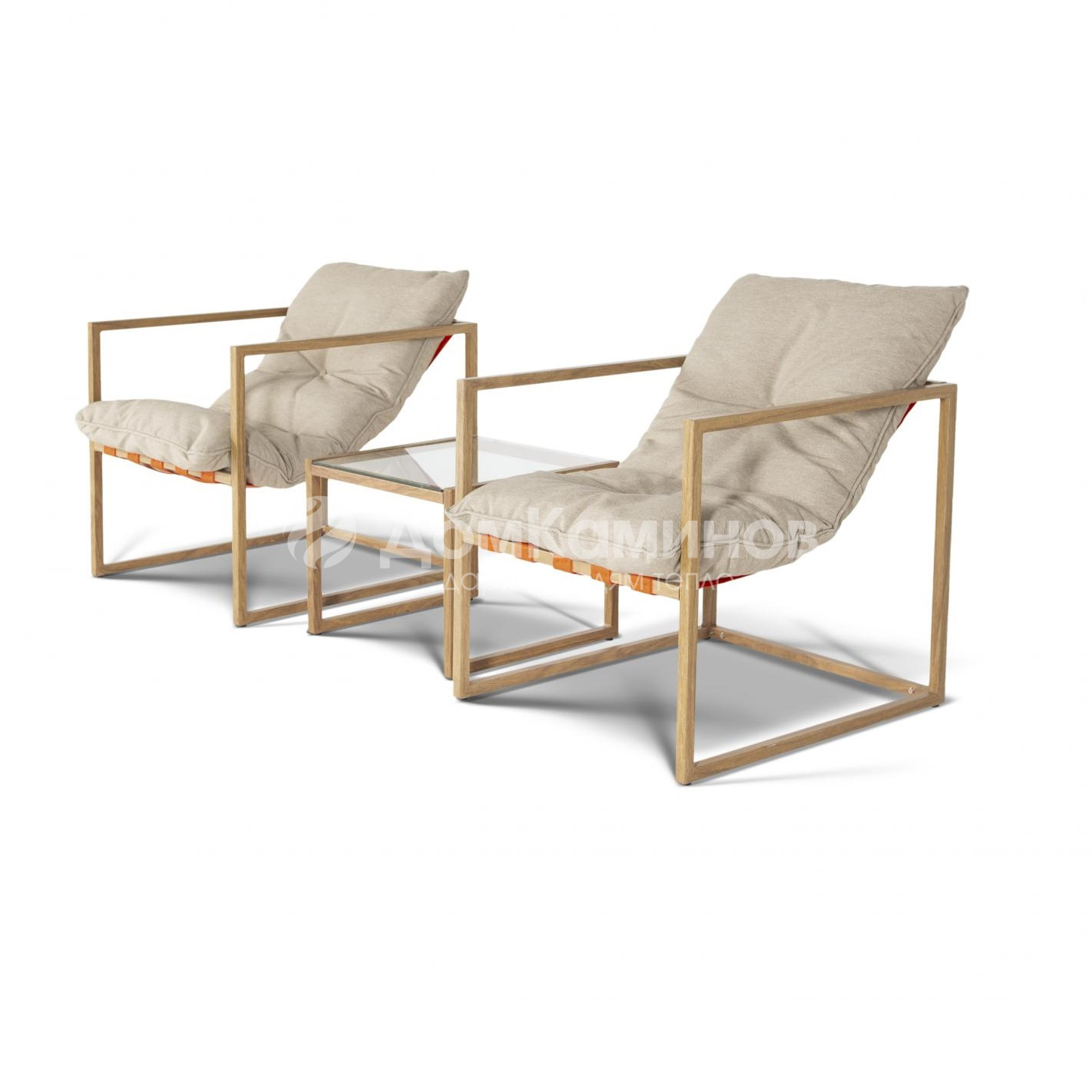 Кофейный набор "Лион". Алюминиевый каркас. Кресла укомплектованы подушками из ткани с влагооталкивающей пропиткой. Столик с стеклянной столешницой толщиной 5 мм.