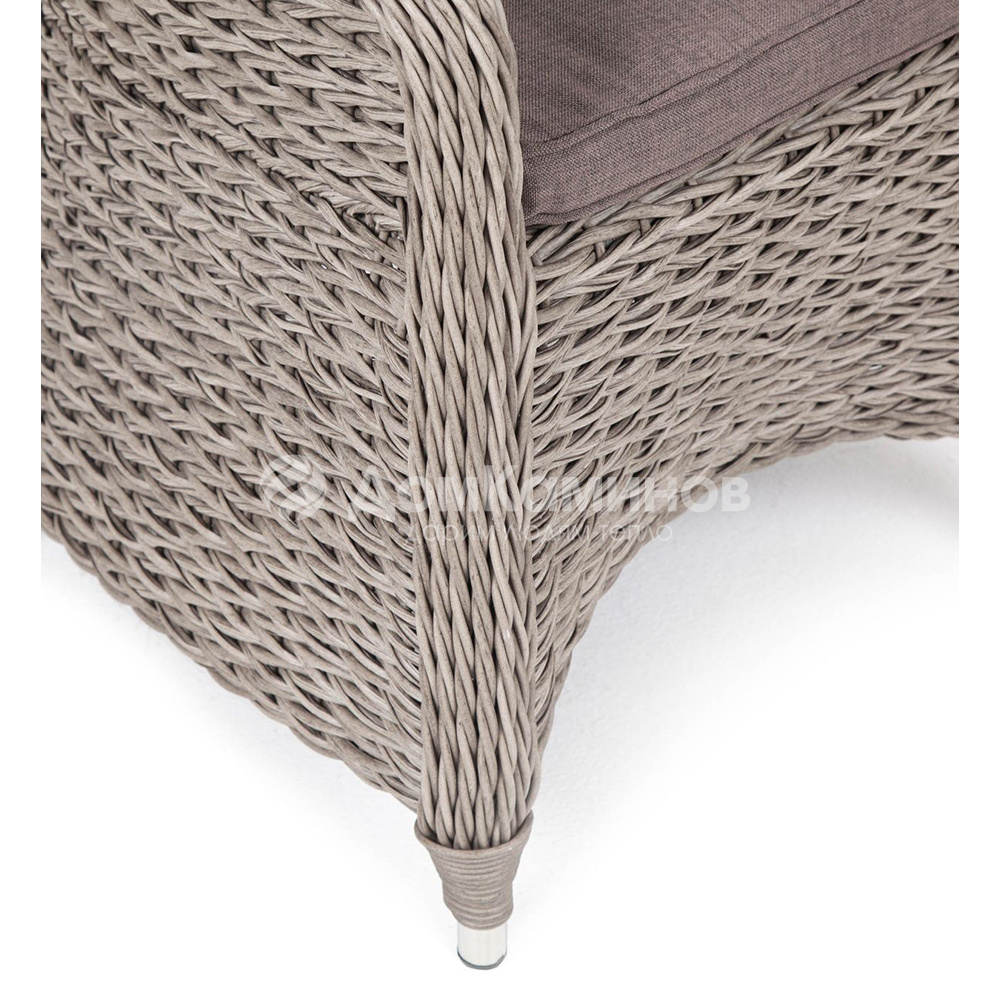 Кресло для сада из искусственного ротанга c плетением вида "гиацинт" из коллекции «Равенна» станет поистине украшением вашего сада, веранды или террасы. Его можно использовать в помещении и на улице.Кресло изготовлено посредством ручного плетения и выполнено из круглого искусственного ротанга графитового цвета. Для укрепления конструкции использован алюминиевый каркас. Благодаря ему плетеное кресло остается легким, но прочным.Оно способно выдержать до 150 кг. Размеры: 680х570х810 мм. В комплект включена серая подушка со съемным чехлом из полиэстера, который обработан влагоотталкивающими пропитками. Чехол можно стирать.