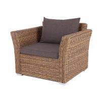 Каркас изготовлен из прочного алюминия, оплетенного вручную искусственным ротангом вида "гиацинт" соломенного оттенка.