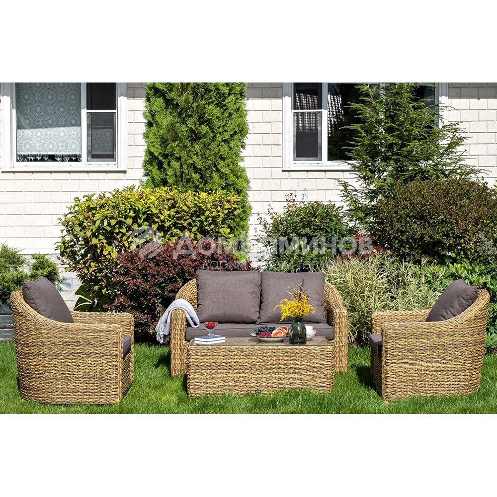 Кресло из искусственного ротанга «Кон Панна» имеет компактные размеры 780×800×800мм.Модель имеет относительно небольшой вес - 17 кг, а так же обладает прочным основанием, которое состоит из алюминиевого каркаса, оплетенного вручную искусственным ротангом вида "гиацинт" соломенного цвета.