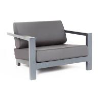 Стильное кресло «Гранада» для создания зоны отдыха. Каркас выполнен из высокопрочного легкого алюминия темно-серого цвета. На сидениях и спинке предусмотрены подушки темно-серого оттенка. Подушки имеют съемные чехлы, которые обработаны влагоотталкивающей пропиткой. Изделие рассчитано на активное использование как под открытым небом, так и в помещении, в том числе в зоне повышенной влажности.