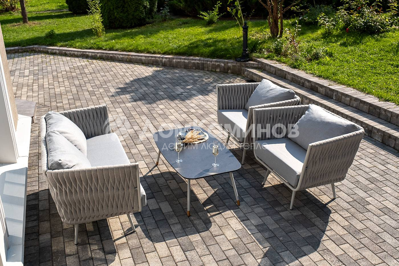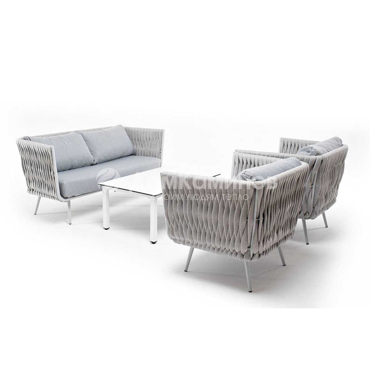 Лаунж-зона 4SIS Монако 4-местная со столом Верона (серый гранит), каркас светло-серый, роуп светло-серый