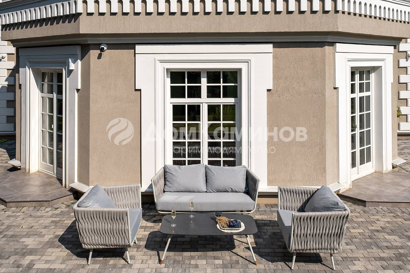 Кресла и диван идут в комплекте с мягкими подушками в чехлах светло-серого цвета.