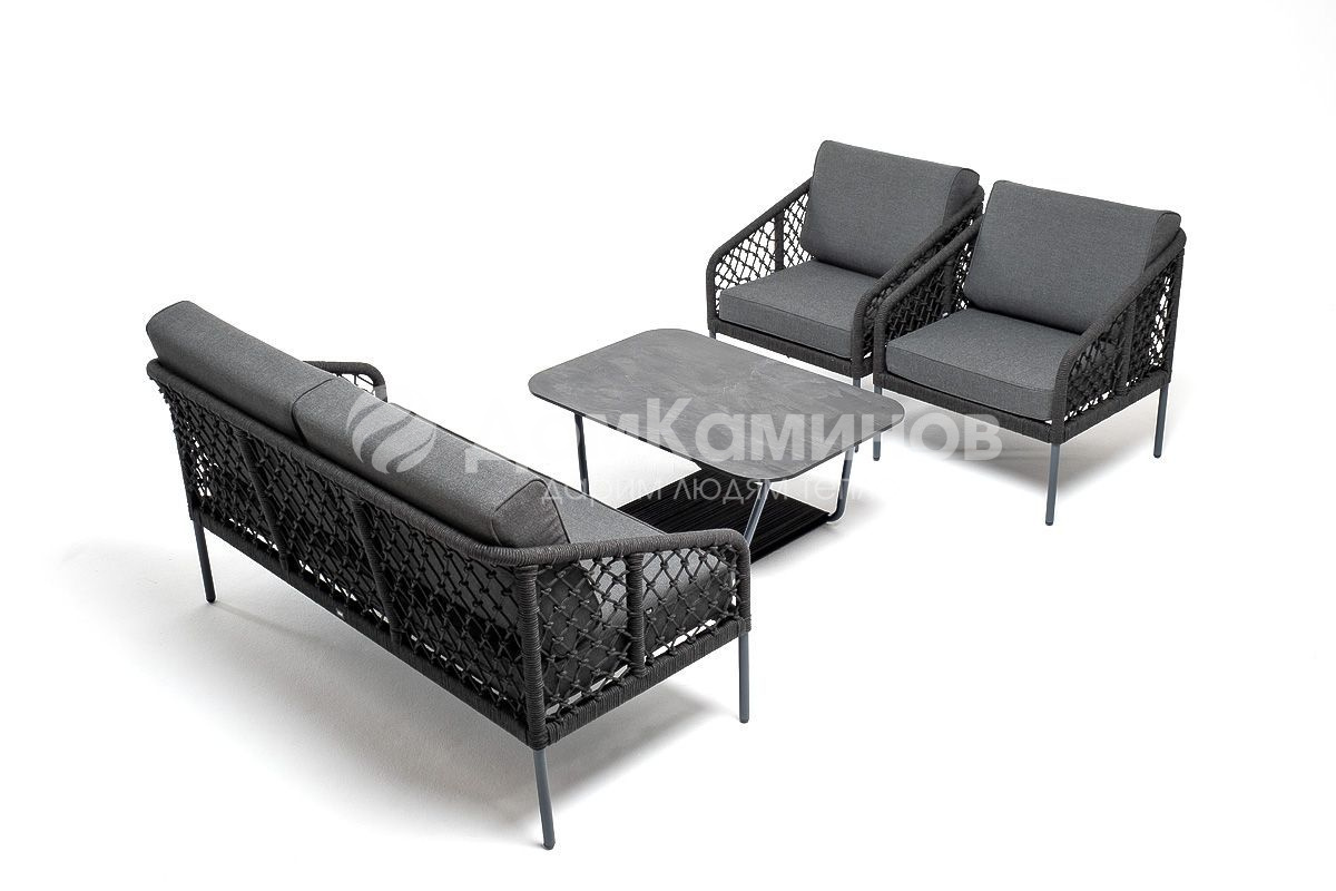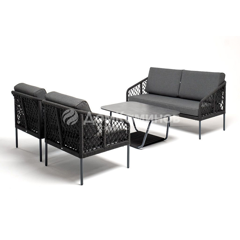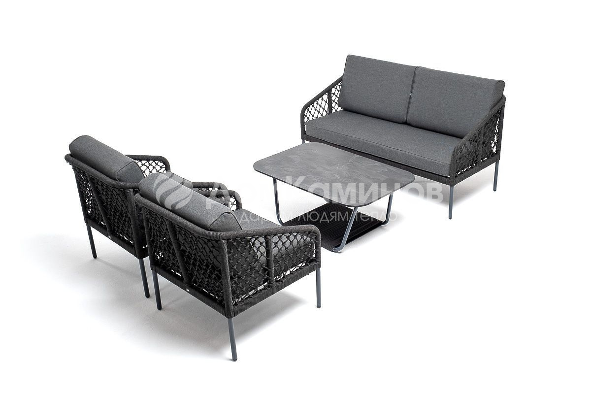 Лаунж-зона 4SIS Канны 4-местная из роупа узелкового плетения Цвет: темно-серый