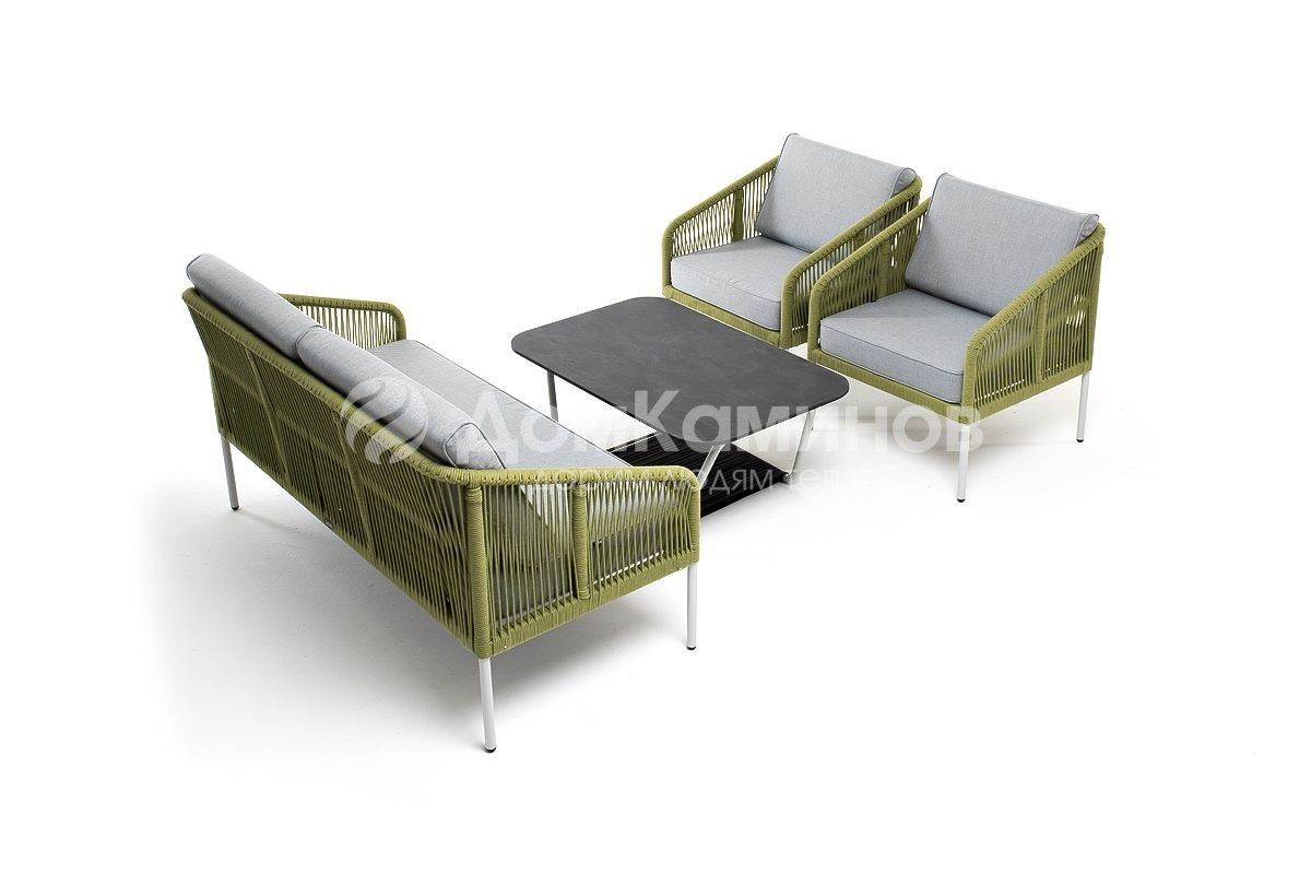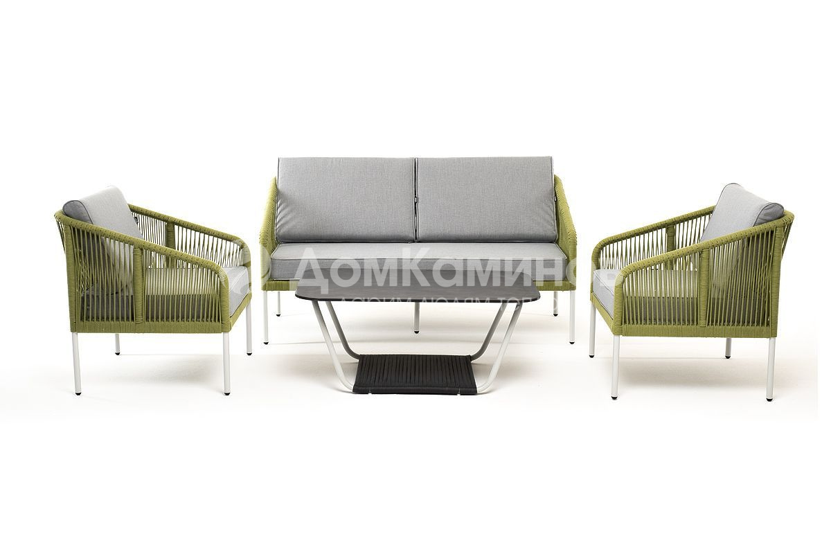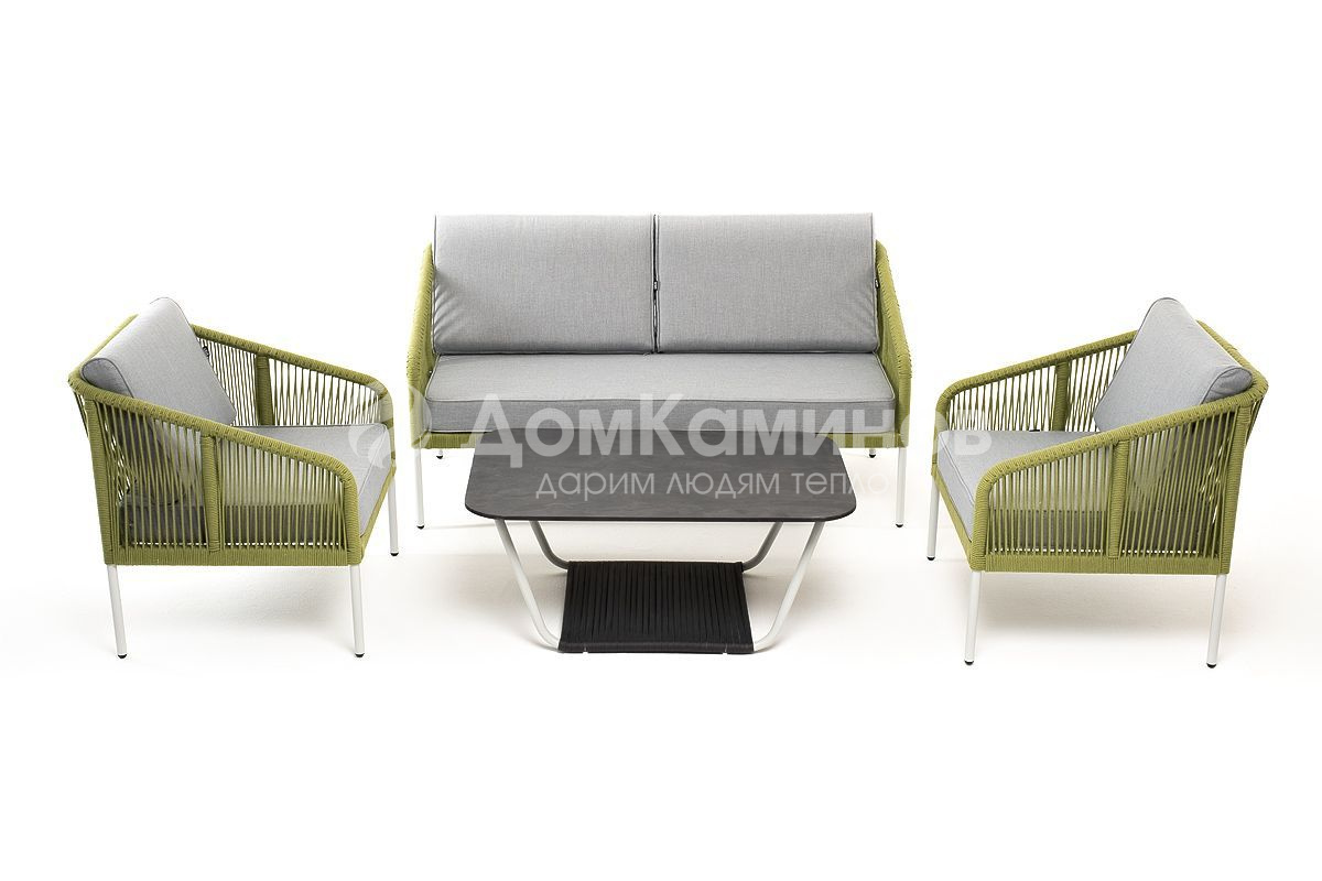 Лаунж-зона 4SIS Канны 4-местная из роупа со столиком Глория Цвет: светло-серый, салатовый меланж