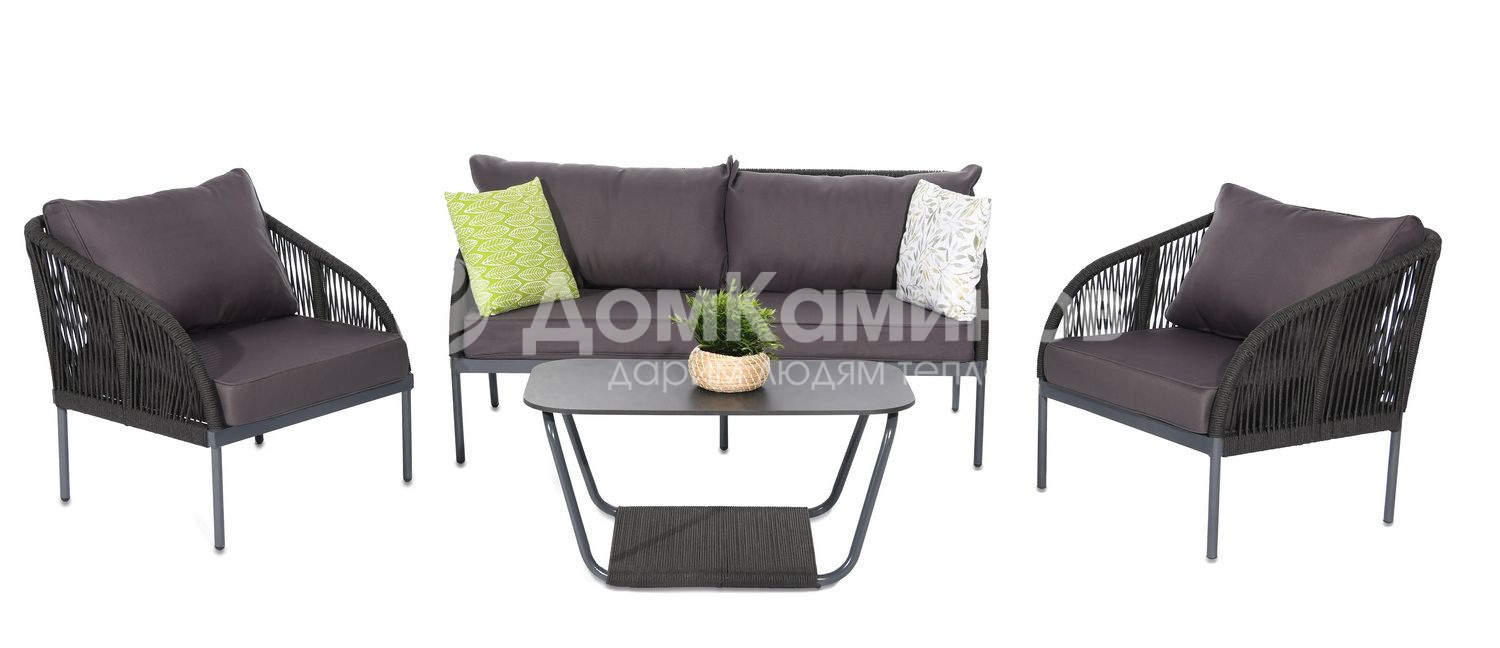 Лаунж-зона 4SIS Канны 4-местная из роупа со столиком Канны Цвет: темно-серый, серый гранит