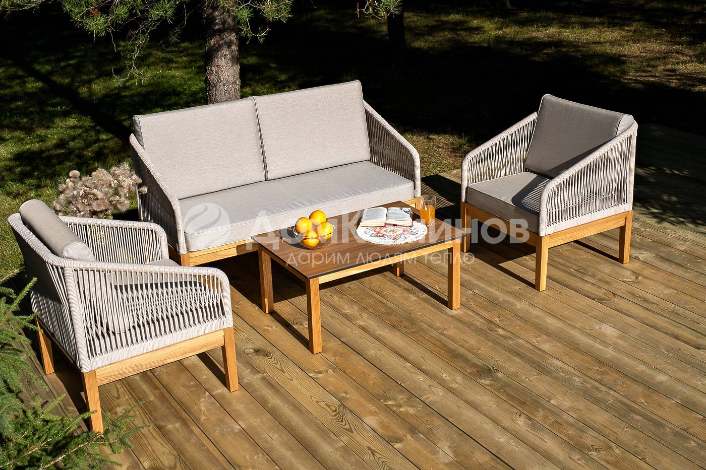 Лаунж-зона 4SIS Канны 4-местная из роупа со столиком Канны Цвет: дуб, бежевый по выгодной цене в Сургуте | Дом Каминов