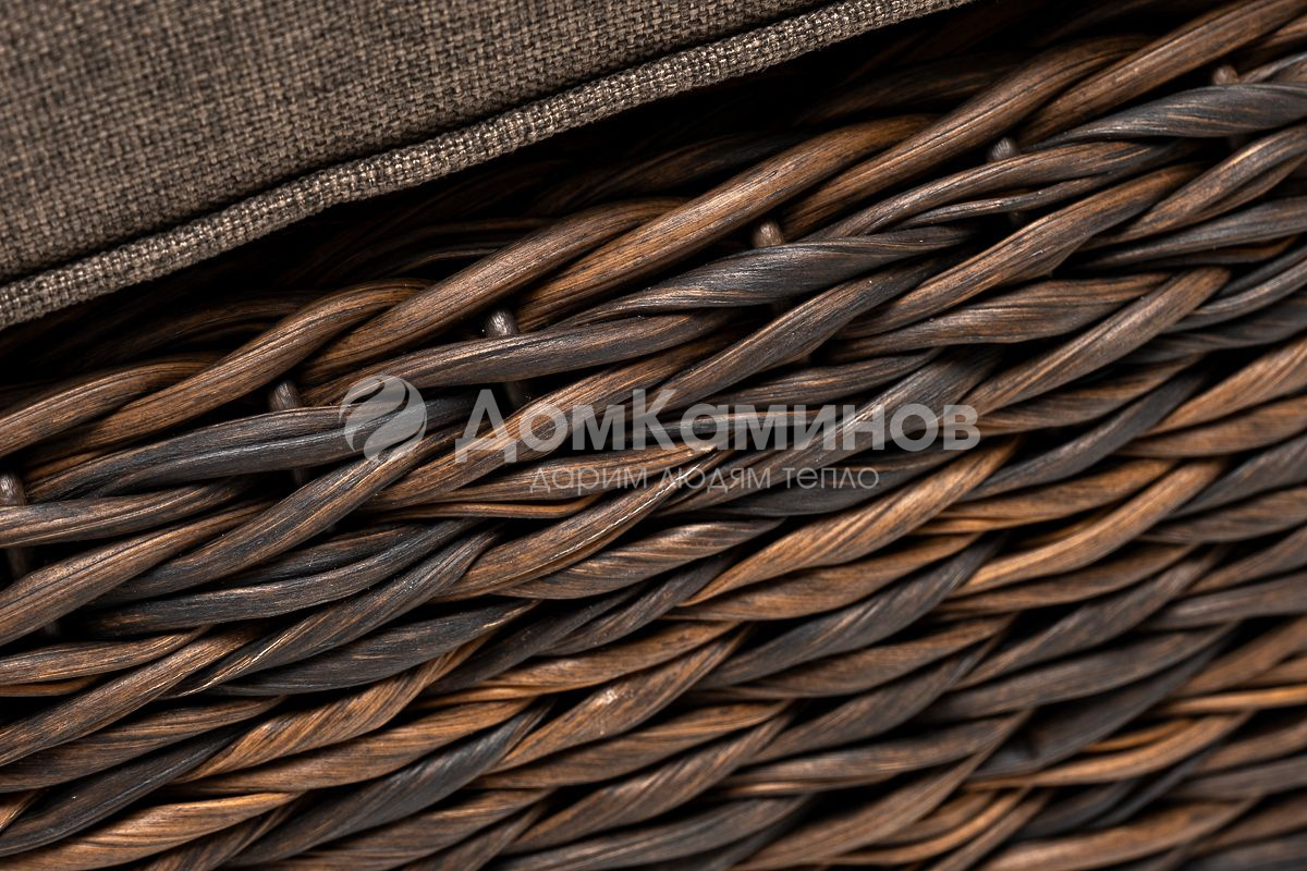 Оттоманка без спинки «Лунго» представлена в коричневом цвете. Размер модели – 740×740×380 мм. Высота без подушки - 300 мм.Она имеет каркас из алюминия высокой прочности. Для изготовления используется ручное плетение вида "гиацинт", выполненное из искусственного ротанга. Оттоманка может служить в комплекте с трансформирующимся диваном «Лунго».Предмет мебели дополняется мягкой подушкой в съемном чехле серого цвета. При пошиве берется полиэстер с плотностью 230гр/м2. Предусмотрена влагоотталкивающая пропитка, которая защищает изделие от влаги.