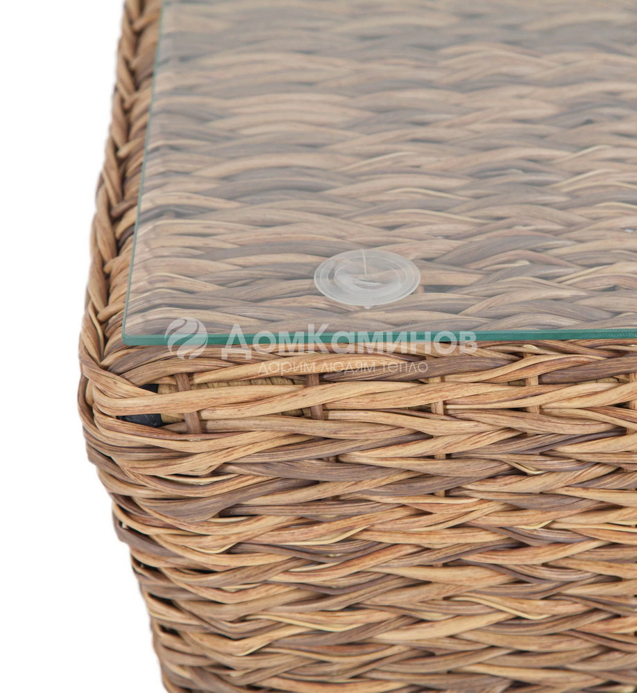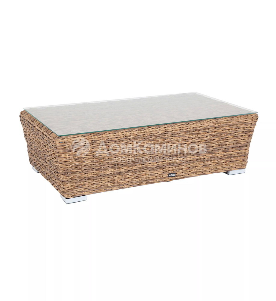 Журнальный столик «Капучино» из искусственного ротанга вида "гиацинт" соломенного оттенка обладает прочным каркасом, изготовленным из алюминия, оплетка которого произведена ручным способом. Поверхность защищена столешницей из 5мм стекла.