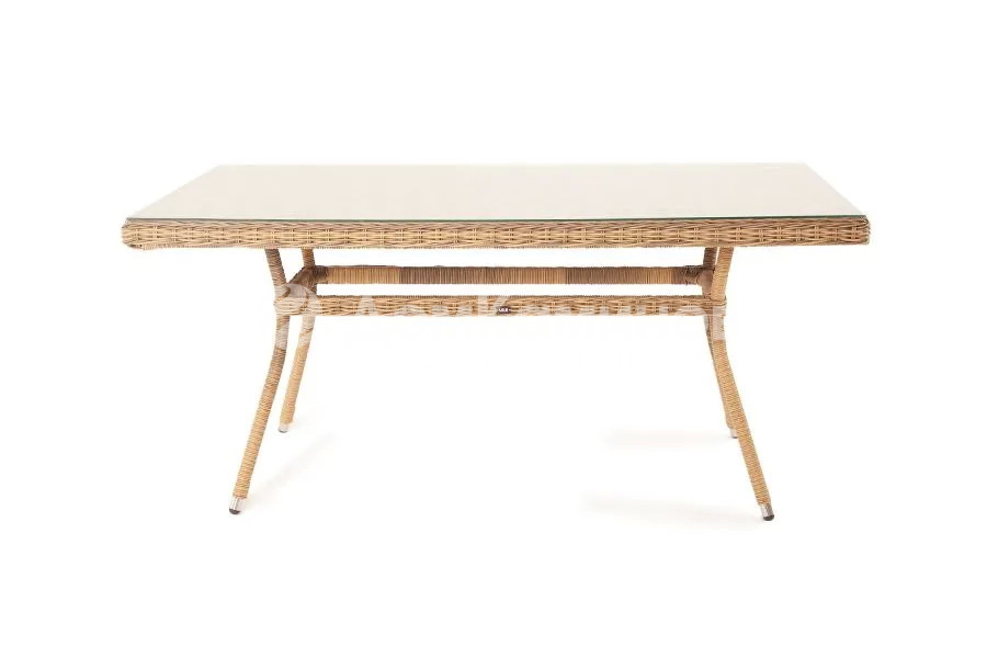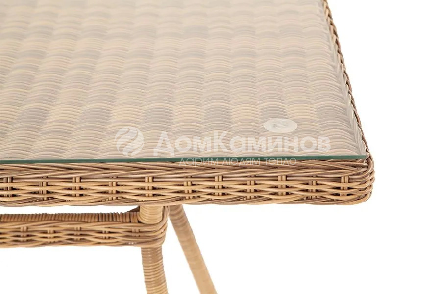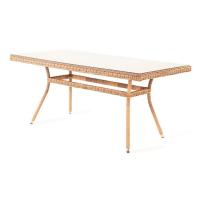 Уличный плетеный стол «Латте» для создания зоны отдыха в саду или на террасе ресторана.Каркас изготовлен из прочного и легкого алюминия, оплетенного с помощью ручного метода искусственным ротангом бежевого оттенка.В качестве столешницы используется ударопрочное закаленное стекло, устойчивое к высоким температурам, толщиной 5 мм. Дополнить стол можно креслами и диванами из этой же серии.