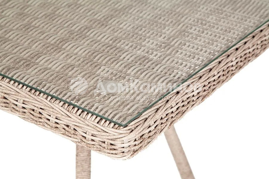 Плетеный стол для сада из искусственного ротанга «Айриш» бежевого цвета идеально вписывается в обеденное пространство на открытом воздухе. В основе стола скелет из алюминия, столешница выполнена из ударопрочного стекла толщиной 5 мм. Габариты: 900 х 900 х 750 мм, которые позволяют уместить до четырех человек.