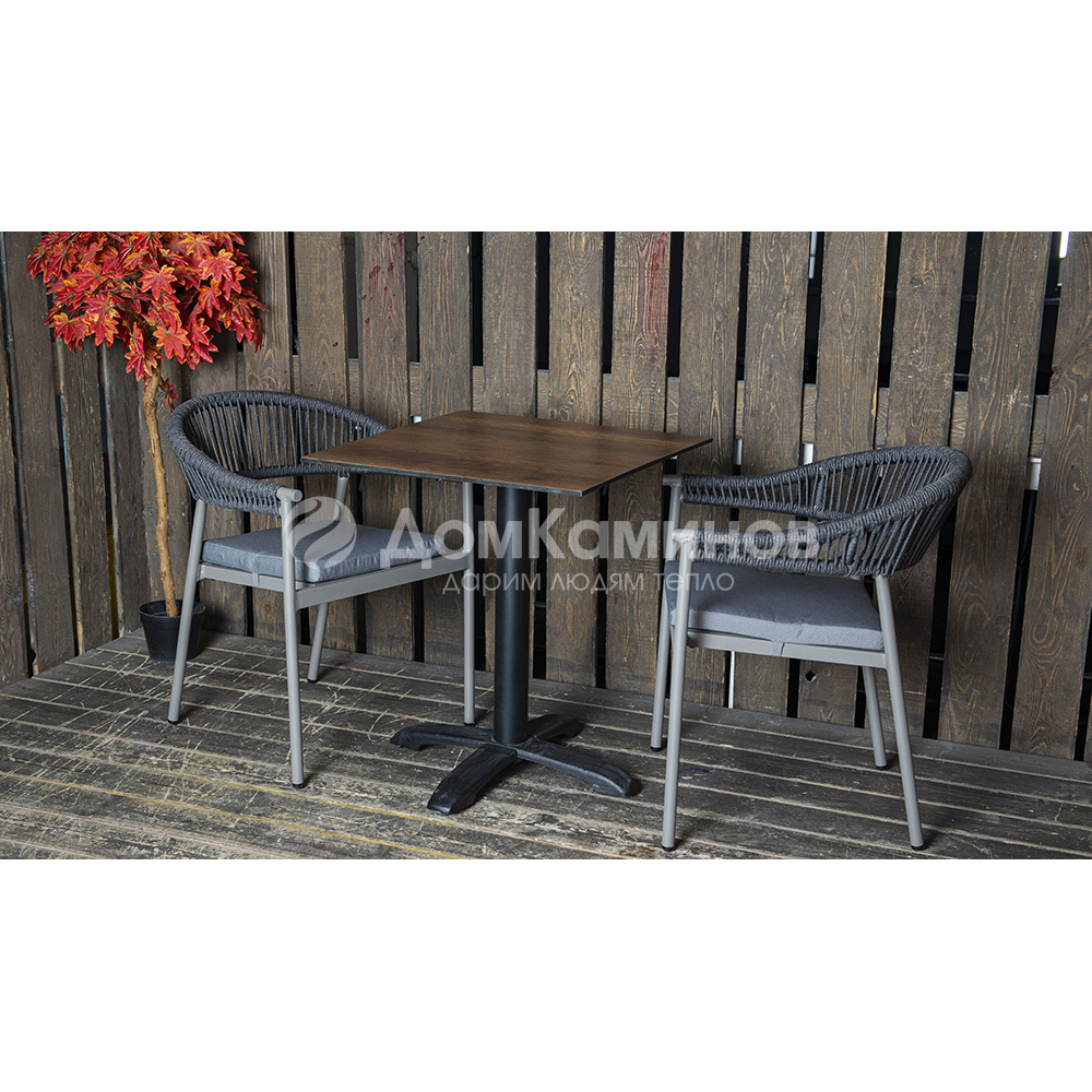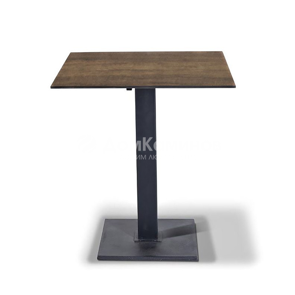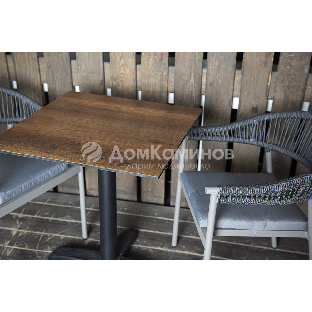 Квадратный интерьерный стол «Каффе» для двоих персон. Столешница выполнена из современного полимерного компакт-пластиком HPL, толщиной 12 мм, в цвете «дум». Этот материал устойчив к высоким температурам (можно ставить горячую посуду), пролитой жидкости, не требует специального ухода. Подстолье изготовлено из чугуна, благодаря чему столик очень устойчив на любых поверхностях.Размеры: 640х640х750 мм. Стол также можно использовать на улице. Для создания зоны отдыха его можно дополнить стульями "Марсель", "Милан", "Бордо".