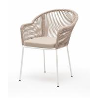 Стул из роупа 4SIS Лион, Каркас из стали белый муар, роуп светло-серый, ткань светло-серая