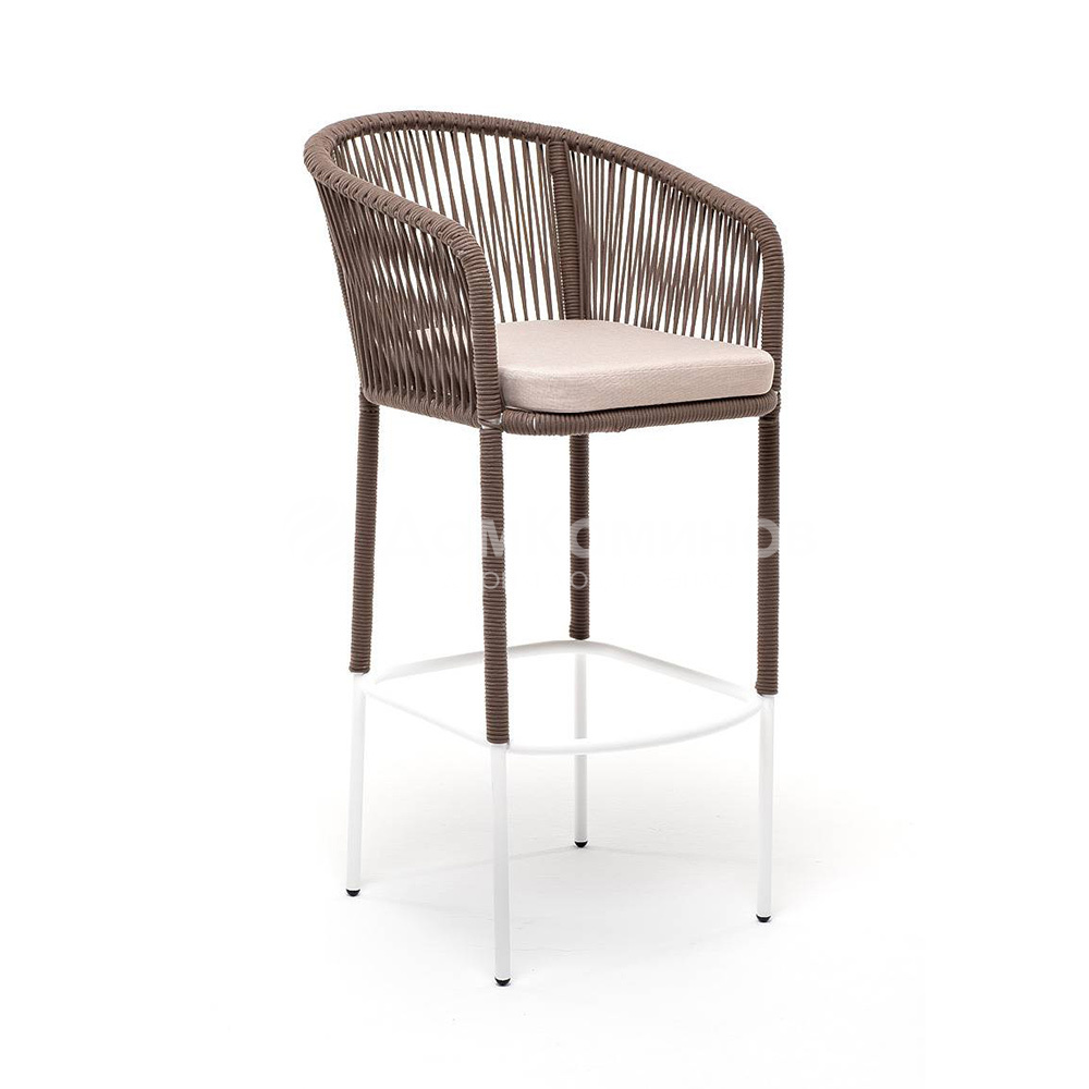 Стул барный 4SIS Марсель из роупа, Каркас из стали белый муар, роуп бежевый, ткань бежевая 052
