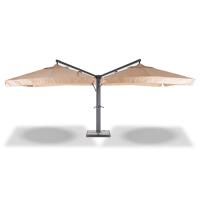 Двухкупольный зонт с равными сторонами 3x3м на центральной металлической опоре. Материал каркаса - алюминий.