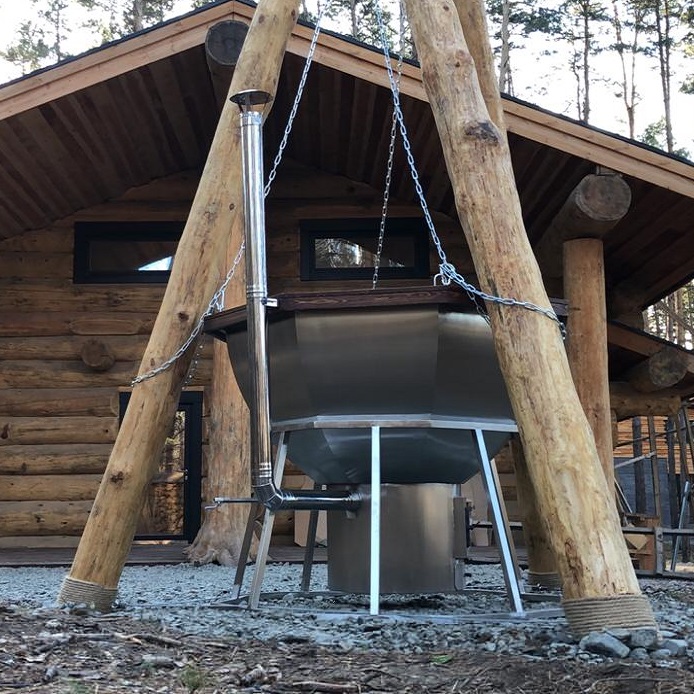 Банный чан – эксклюзивная новинка на российском рынке, стремительно набирающая обороты. Это и баня, и парилка одновременно, совмещенные в одном необычном формате. Чан наполняют водой, располагают над огнем и прогревают до 30-40 градусов. После нагрева воды парение осуществляется на тлеющих углях. Пребывание в чане можно сравнить с купанием в полезном горячем источнике, а летом его можно использовать в качестве бодрящей холодной купели.