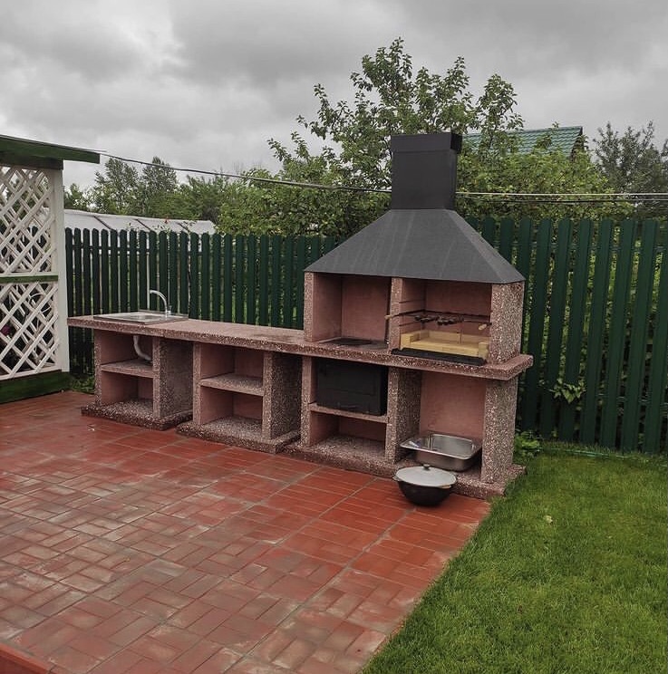 Сборные барбекю комплексы собираются как конструктор по принципу " шип - паз ", без применения клея и цементных растворов. Можно создать полноценную летнюю кухню, где можно нарубить мясо, тут же приготовить и помыть руки. Есть возможность вмонтировать печь с конфоркой под казан, что также прибавляет возможности у Вашей кухни. Сборка одного элемента, например печи барбекю, занимает не более 10 минут, соответственно после монтажа можно сразу разжигать костер. Мы на 100% уверены, что наши изделия не боятся ни огня, ни воды, ни морозов. Сборные барбекю, выполненные из специального жаропрочного бетона с добавлением мраморной крошки. Все модели оснащены медным или стальным колпаком - дымосборником. Имеют такую конструкцию, чтобы можно было легко собрать без опыта и без специальных инструментов и материалов. Каркас барбекю - это высококачественный, армированный бетон. Благодаря гидрообработке позволяет повысить срок использования на более чем 20 лет Возможно изготовление барбекю по Вашим размерам. Есть возможность укомплектовать барбекю печью под казан, мойкой, керамическим или газовым грилем, тандыром и тд.