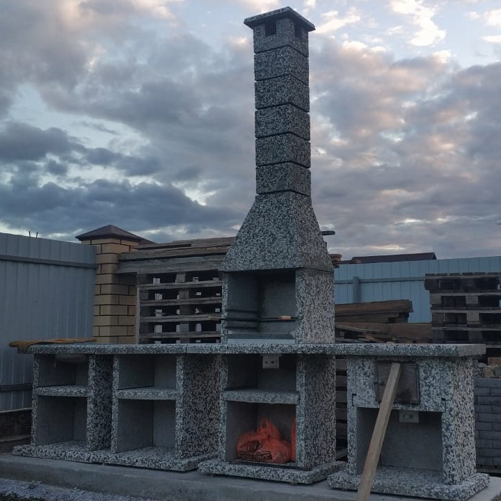 Сборные барбекю комплексы собираются как конструктор по принципу " шип - паз ", без применения клея и цементных растворов. Можно создать полноценную летнюю кухню, где можно нарубить мясо, тут же приготовить и помыть руки. Есть возможность вмонтировать печь с конфоркой под казан, что также прибавляет возможности у Вашей кухни. Сборка одного элемента, например печи барбекю, занимает не более 10 минут, соответственно после монтажа можно сразу разжигать костер.Мы на 100% уверены, что наши изделия не боятся ни огня, ни воды, ни морозов. Сборные барбекю, выполненные из специального жаропрочного бетона с добавлением мраморной крошки. Все модели оснащены медным или стальным колпаком- дымосборником. Имеют такую конструкцию, чтобы можно было легко собрать без опыта и без специальных инструментов и материалов. Барбекю – это способ приготовления продуктов. В печи барбекю готовят вообще все, что можно пожарить на углях. Принцип действия барбекю – приготовление блюда над тлеющими углями, а не на открытом огне. Блюда в барбекю располагаются на решетке, которая, как правило, может передвигаться по высоте для регулирования скорости приготовления и степени прожарки. Некоторые модели оснащены вертелами, дымоотводящим каналом, столешницами и ящиками. Нержавеющая вытяжка Выполнена из высококачественной, кислотноустойчивой нержавейки. Эксплуатируется на улице и не требует дополнительных защитных навесов Основная конструкция Каркас барбекю - это высококачественный, армированный бетон. Благодаря гидрообработке позволяет повысить срок использования на более чем 20 лет. Простая сборка Вам не придется тратить много времени на сборку барбекю Stimlex, так как она представляет собой блочную конструкцию, которая легко скрепляется между собой. Индивидуальный подход Возможно изготовление барбекю по Вашим размерамю. Есть возможность укомплектовать барбекю печью под казан, мойкой, керамическим грилем и тд.