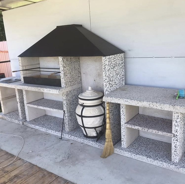Сборные барбекю комплексы собираются как конструктор по принципу " шип - паз ", без применения клея и цементных растворов. Можно создать полноценную летнюю кухню, где можно нарубить мясо, тут же приготовить и помыть руки. Есть возможность вмонтировать печь с конфоркой под казан, что также прибавляет возможности у Вашей кухни. Сборка одного элемента, например печи барбекю, занимает не более 10 минут, соответственно после монтажа можно сразу разжигать костер. Мы на 100% уверены, что наши изделия не боятся ни огня, ни воды, ни морозов. Сборные барбекю, выполненные из специального жаропрочного бетона с добавлением мраморной крошки. Все модели оснащены медным или стальным колпаком - дымосборником. Имеют такую конструкцию, чтобы можно было легко собрать без опыта и без специальных инструментов и материалов. Каркас барбекю - это высококачественный, армированный бетон. Благодаря гидрообработке позволяет повысить срок использования на более чем 20 лет Возможно изготовление барбекю по Вашим размерам. Есть возможность укомплектовать барбекю печью под казан, мойкой, керамическим или газовым грилем, тандыром и тд.